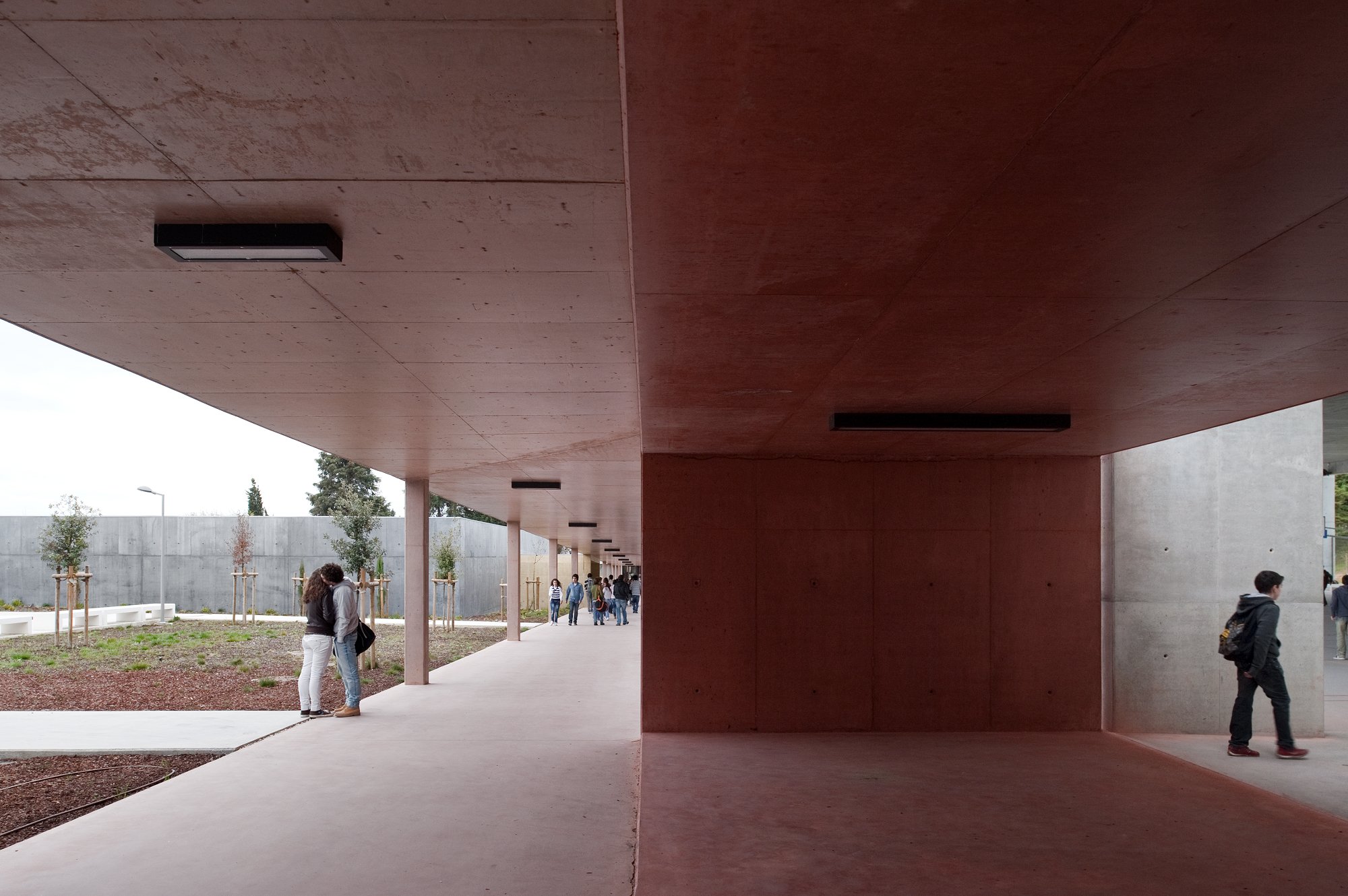A gathering and ungathering space assumed in a logic of uniting the three schools. We focused mainly on the remodel of the disperse classroom and administrative support blocks, uniting them though a cloister and reating accessible areas and a new circulation paths joint by a living and covered playground.