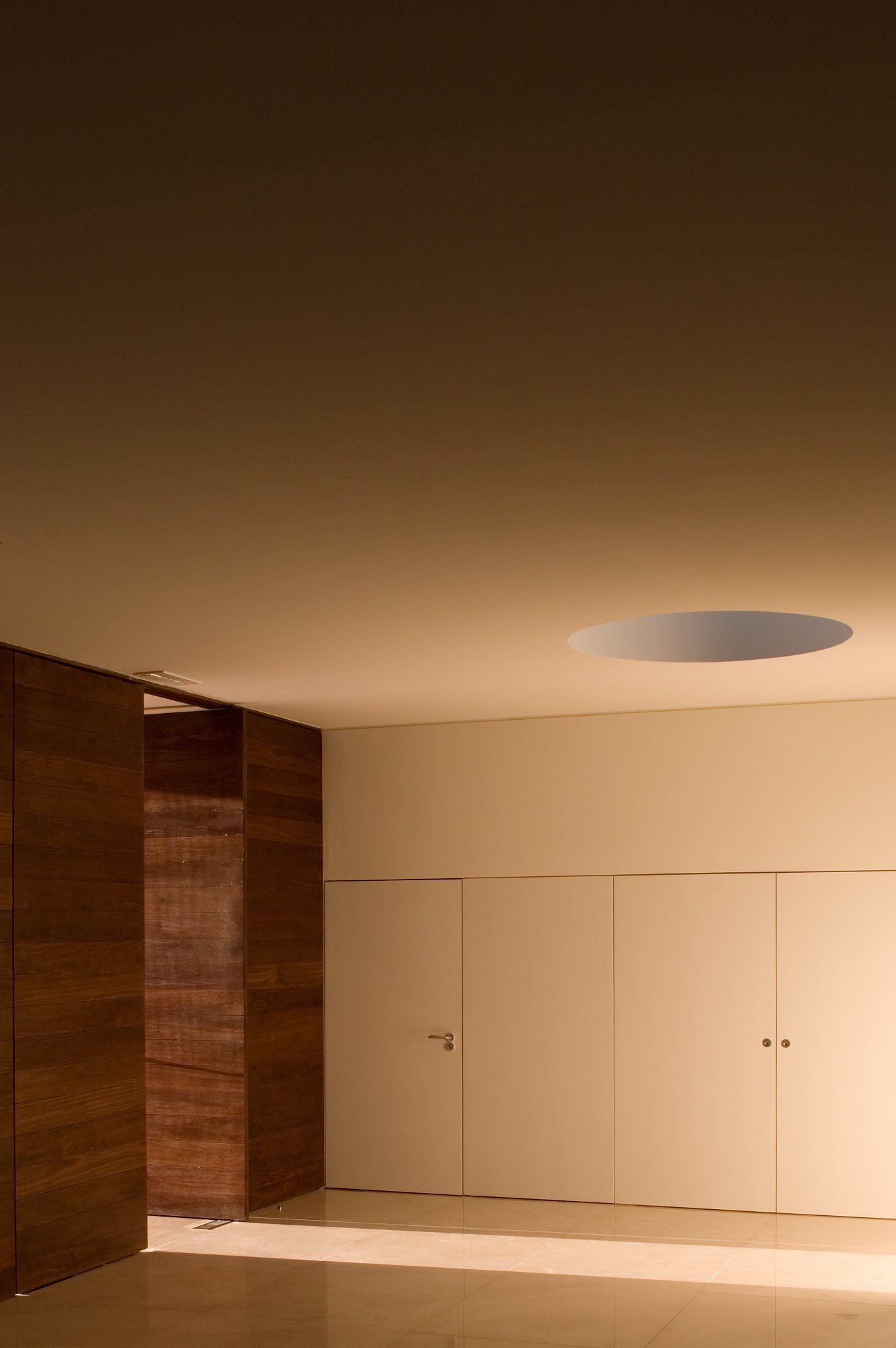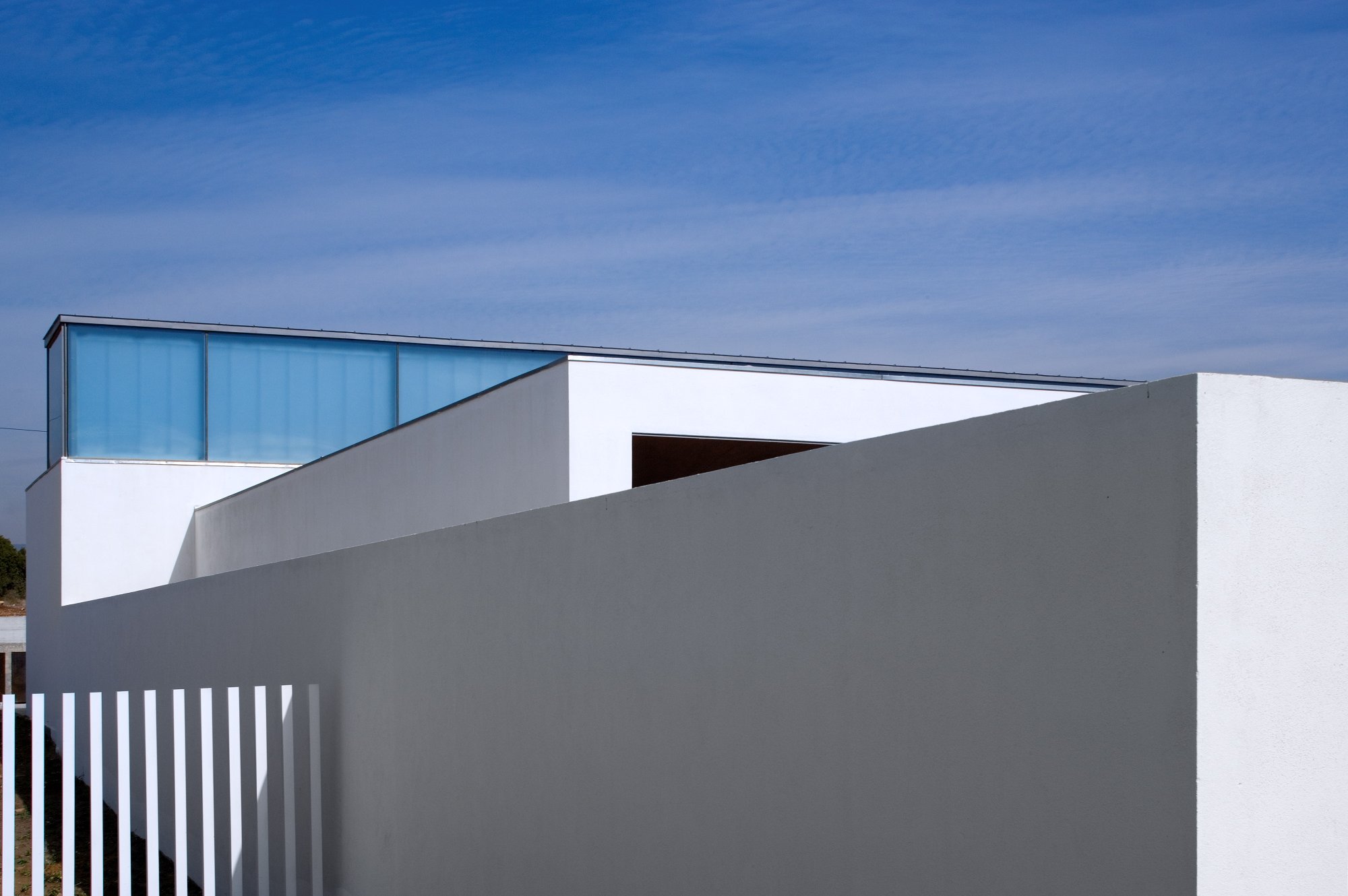 The kindergardn is located in a promontory with two different and interesting views, one towards the sea and the other facing Sintra's mountains/hills. The idea was not only to use but to incorporate important references from the children's imaginary world. Taking this into account, the present school was designed using pure, simple and regular volumes and shapes, either opaque or transparent, with some cylindrical skylights cutting the ceiling allowing the entrance of natural light.
