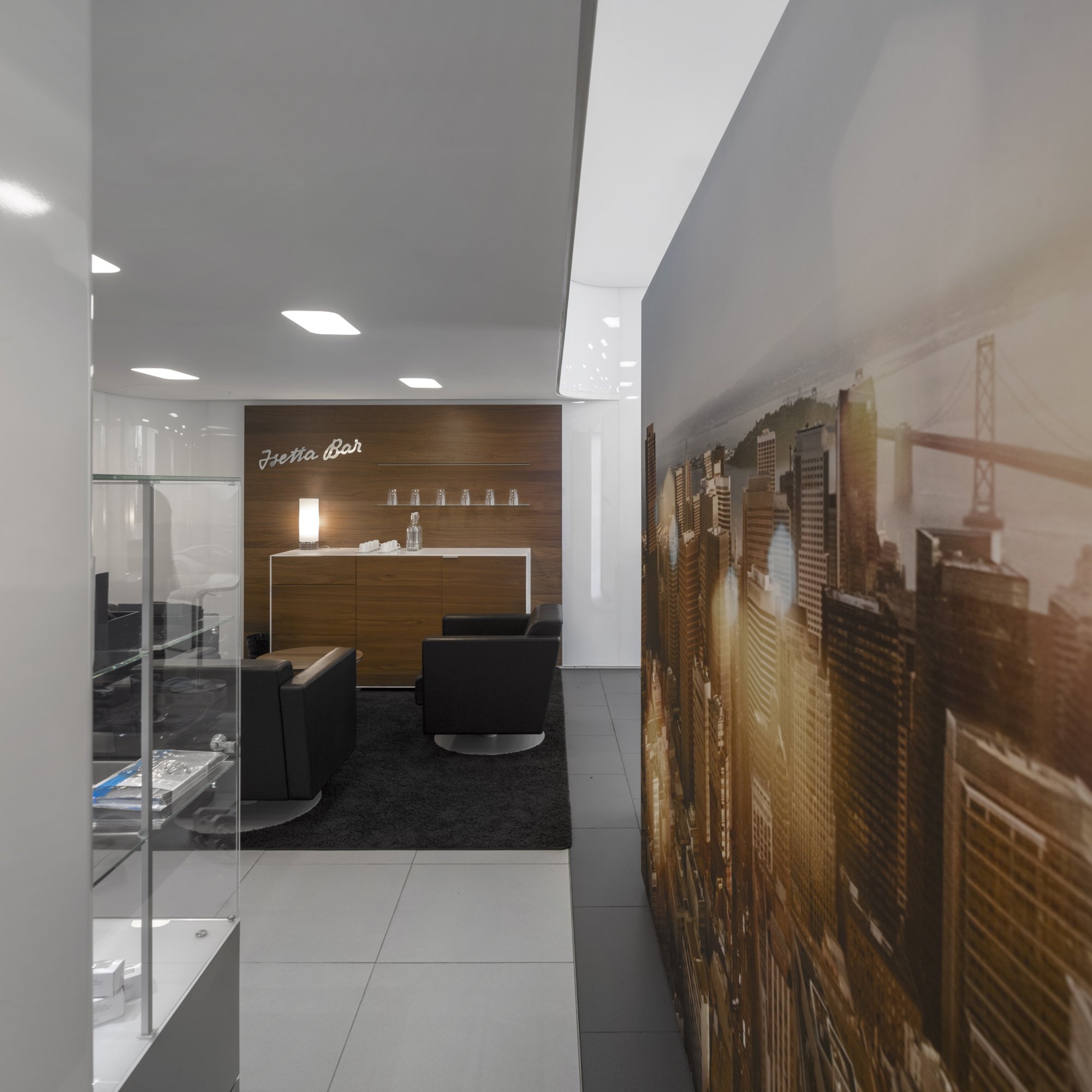 The lightng in the ceilling, apparently scattered at random, take us to the worlds of high-speed movement, based on a clean design that allows the cars on display to express the importance of the project essence.