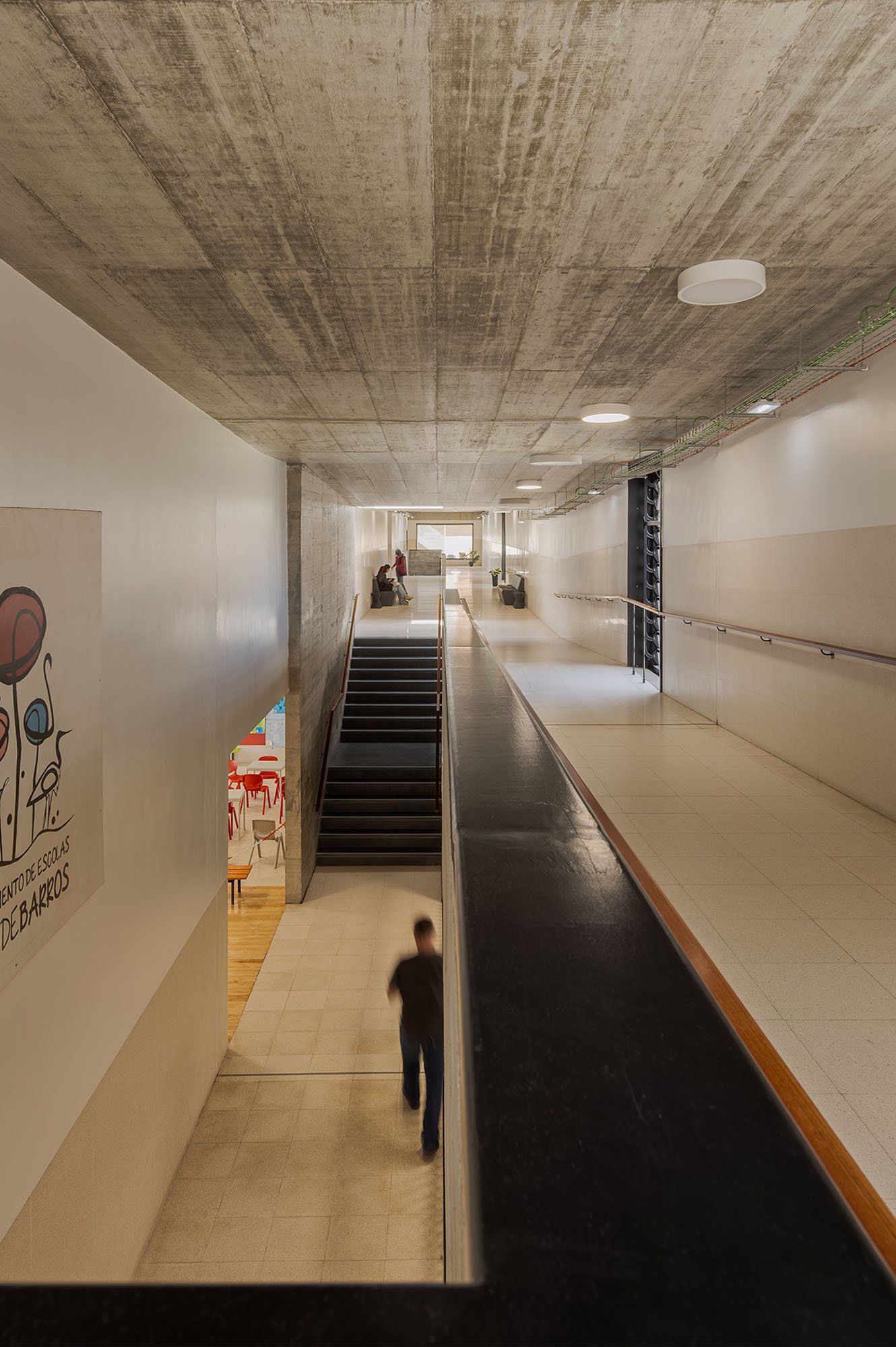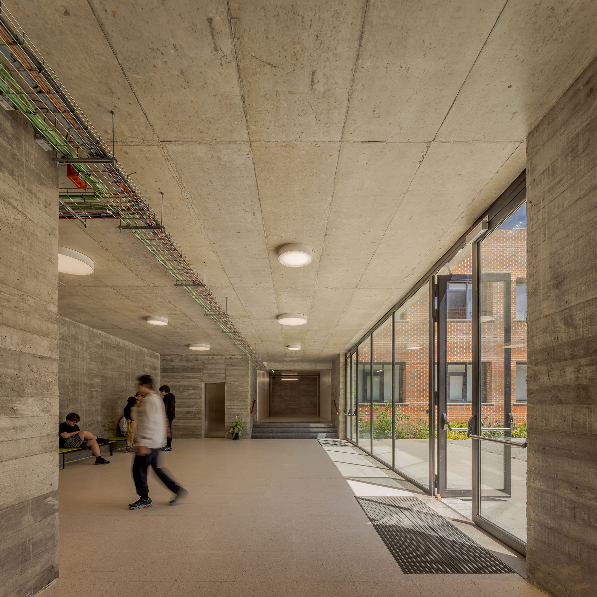 Transforming a dispersed school, consisting of several separated buildings, into a single building that, following the logics and circulation axes created inside, extends across the terrain creating courtyards, open spaces, recesses and galleries.