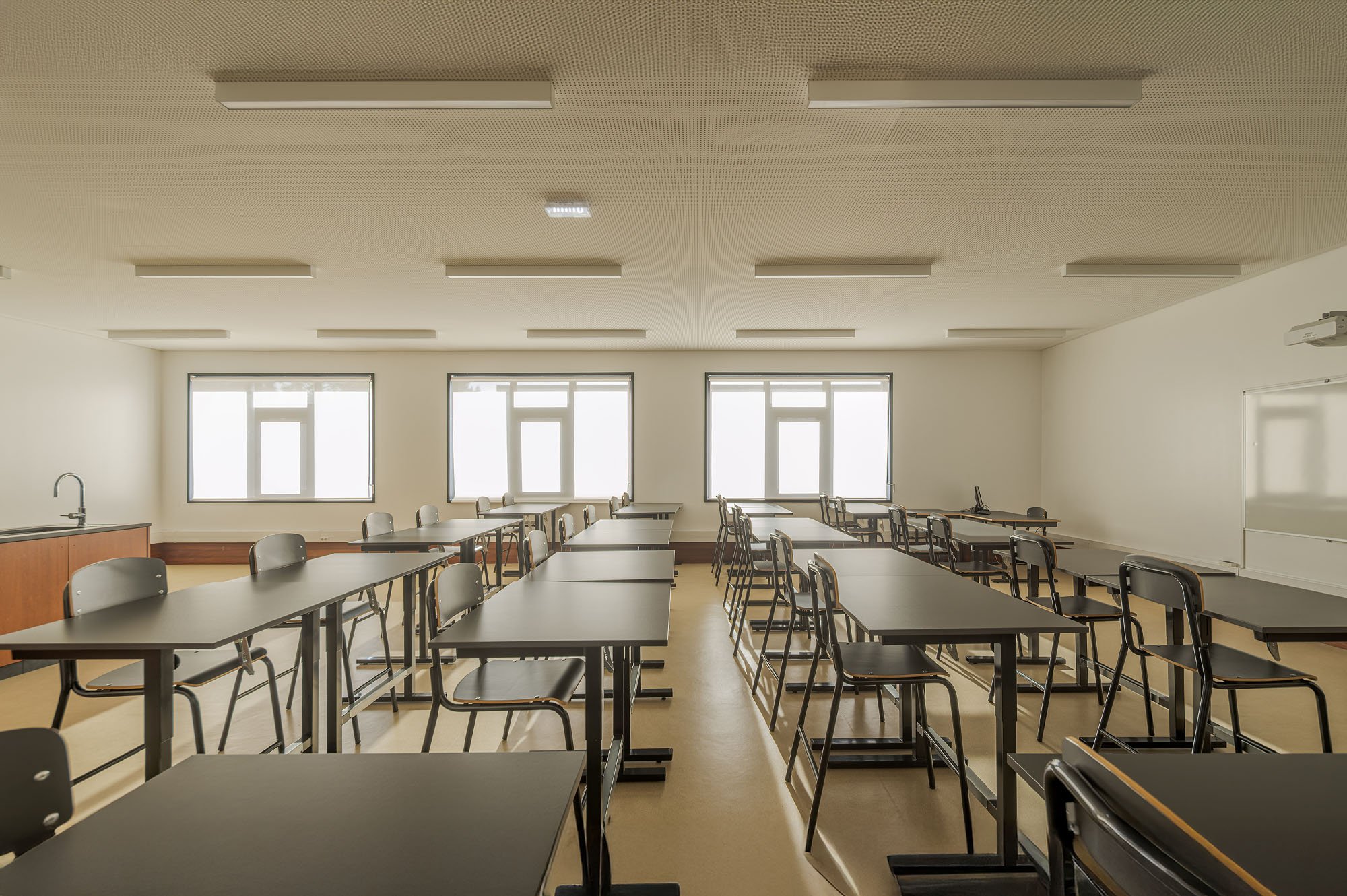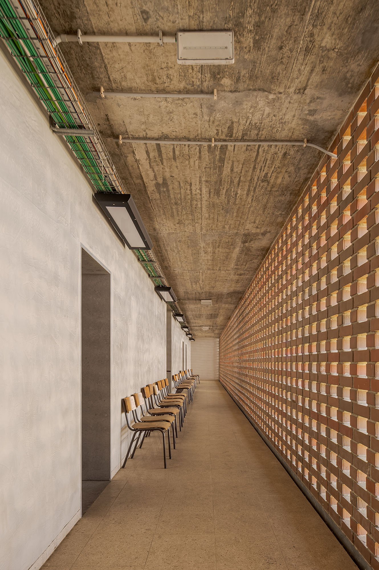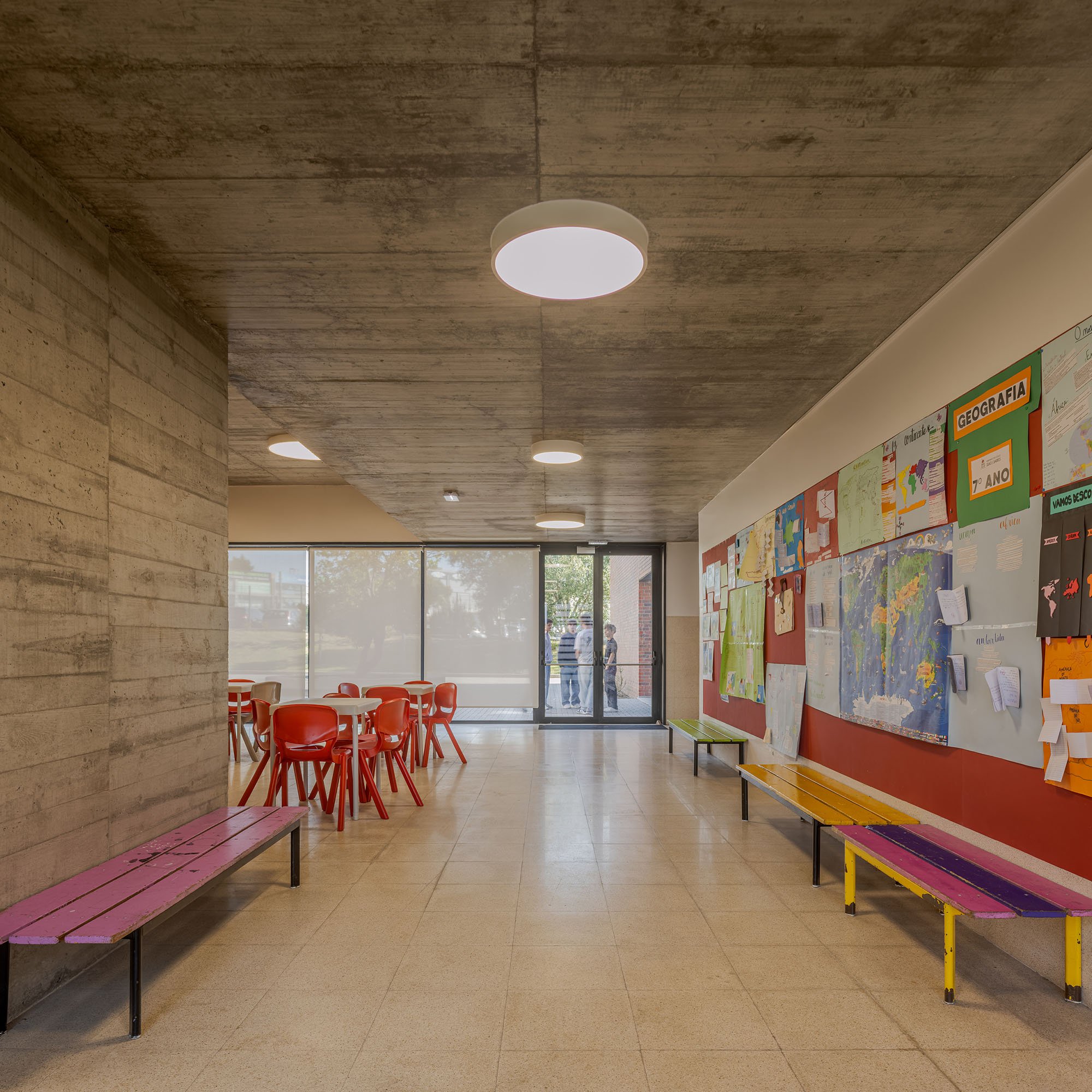 Transforming a dispersed school, consisting of several separated buildings, into a single building that, following the logics and circulation axes created inside, extends across the terrain creating courtyards, open spaces, recesses and galleries.