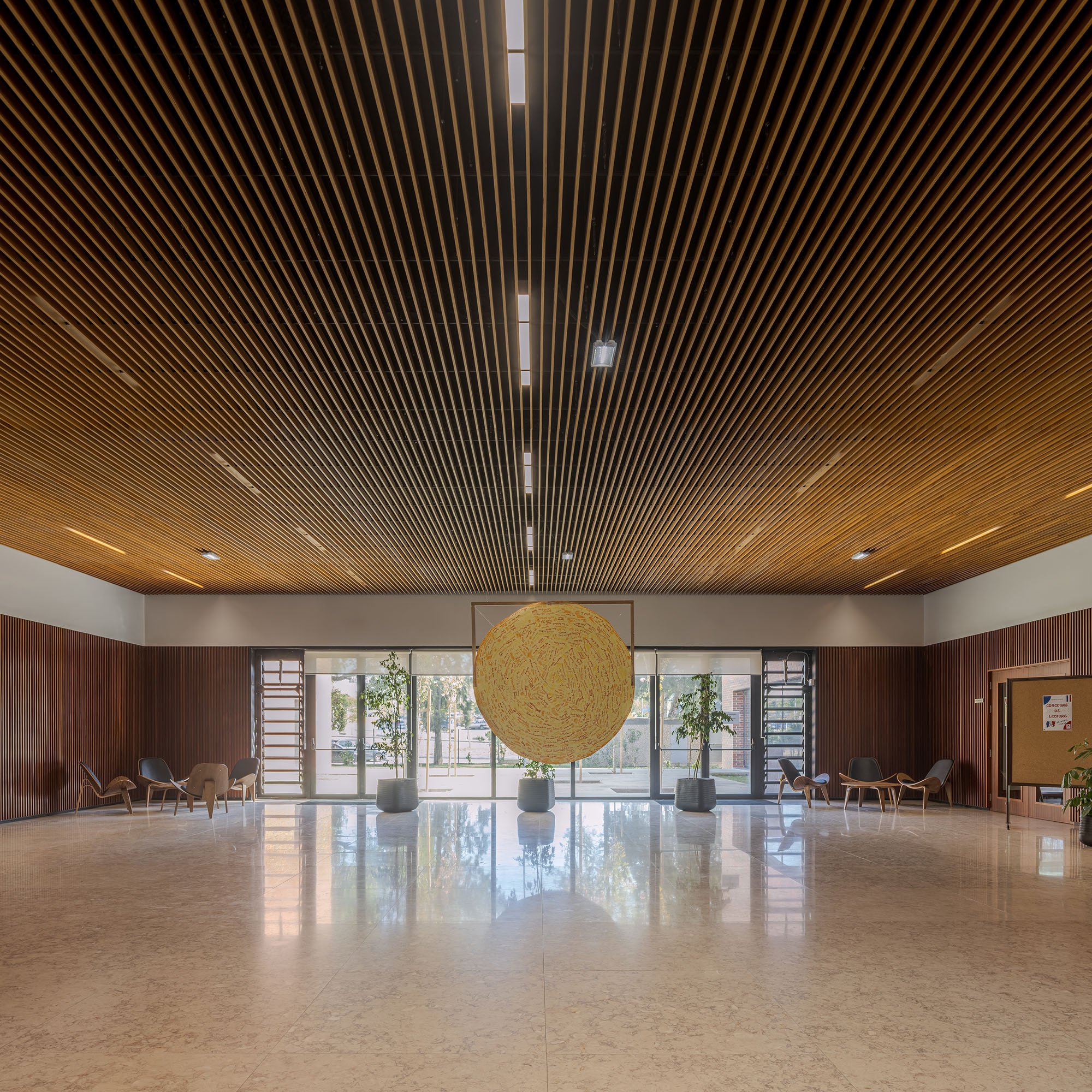 Transforming a dispersed school, consisting of several separated buildings, into a single building that, following the logics and circulation axes created inside, extends across the terrain creating courtyards, open spaces, recesses and galleries.