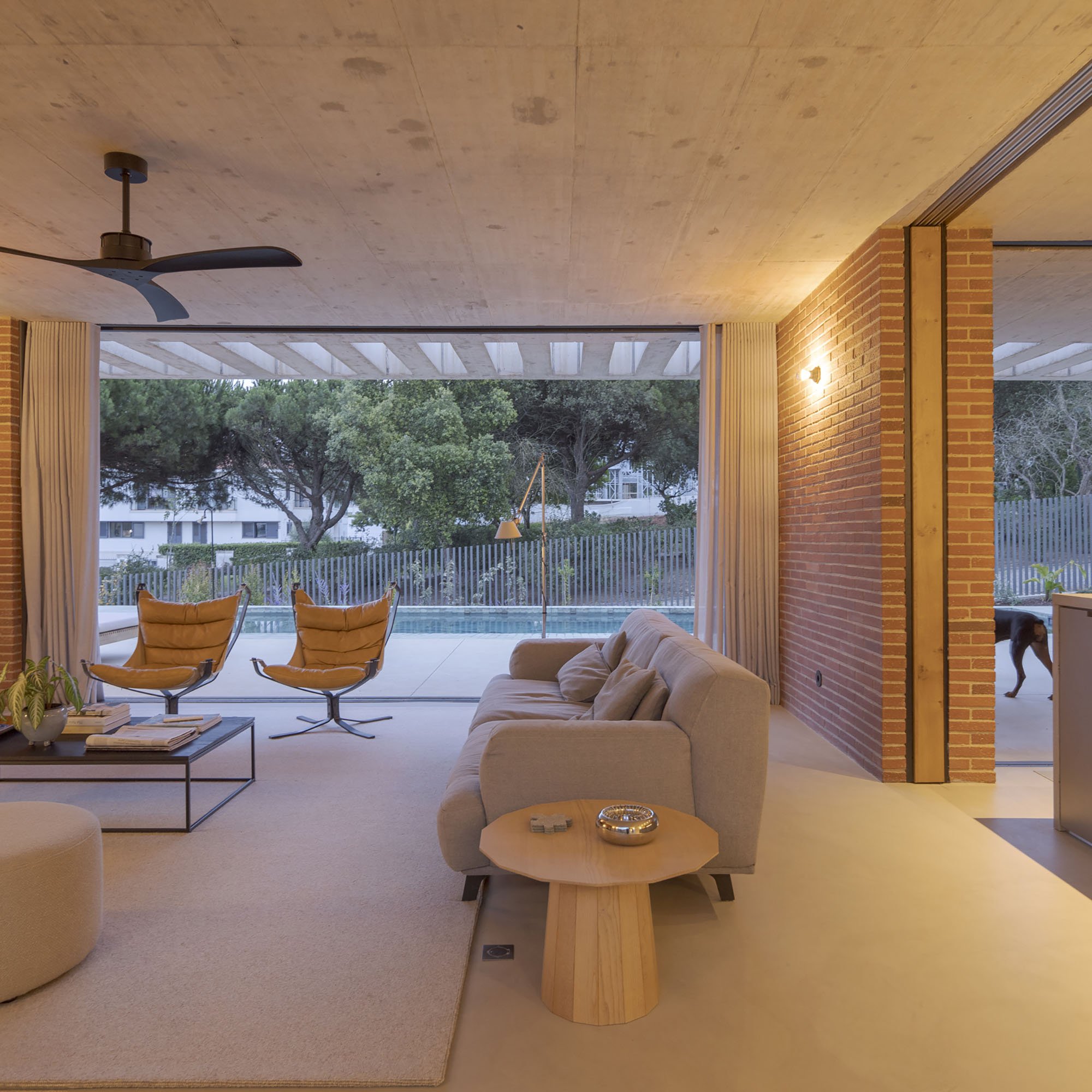 The design of the house seeks to synthesize the sensation conveyed by the landcaping work, the courtyards, the interplay of ligh and shadow, the differences in levels and the materiality, which are embraced as references for the project. The horizontal plane and the pargolas that frame the construction project us towards the view, framing the house in a welcoming and coherent manner.