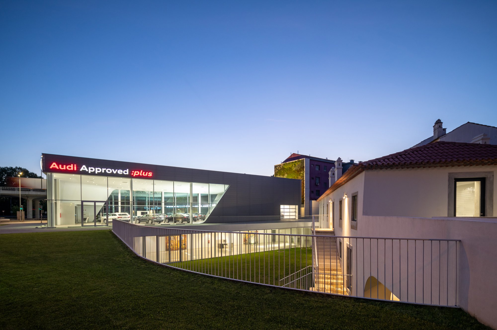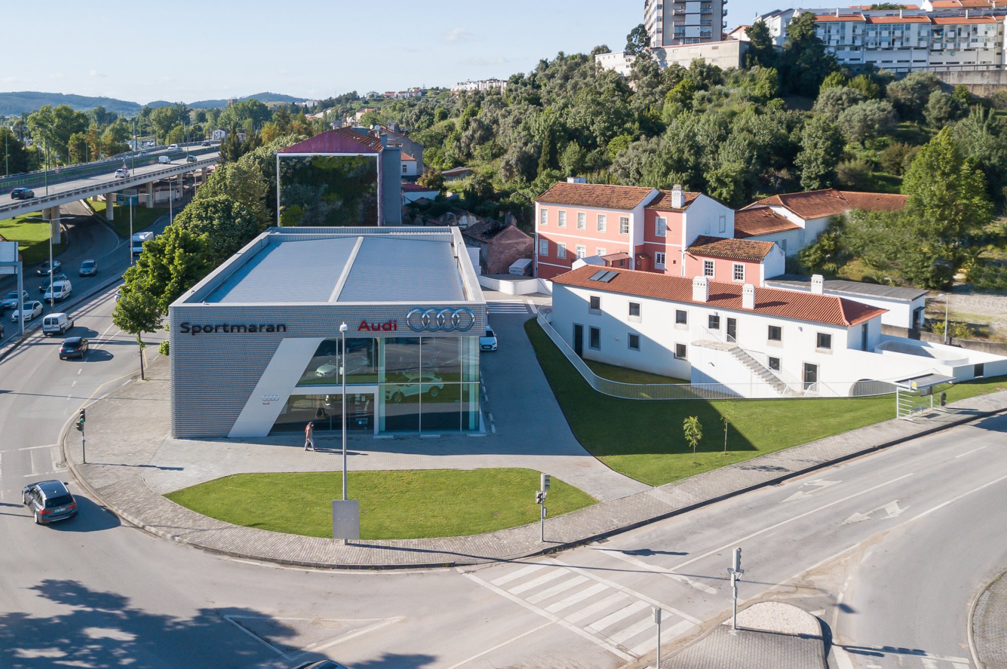 This project aims to simultaneously solve the finishing of the existing building strip through a single building, and follow the aesthetic and fucntional requirements determined in the AUDI Image Program. In general, an attempt was made to follow the important guidelines defined in the plan for the area, namely: the recovery and rehabilitation of the Arco do Pintado building complex, the resolution of the finishing of the building band with a "green" structure and the definition of a lowered square in order to leave the façade of historic builing free.