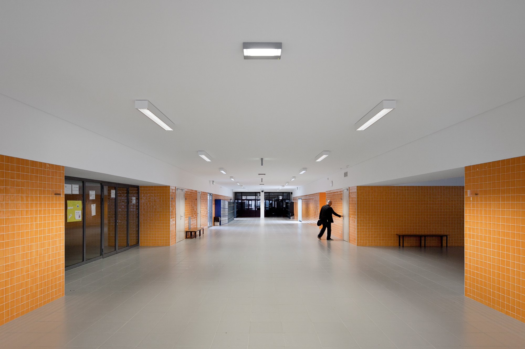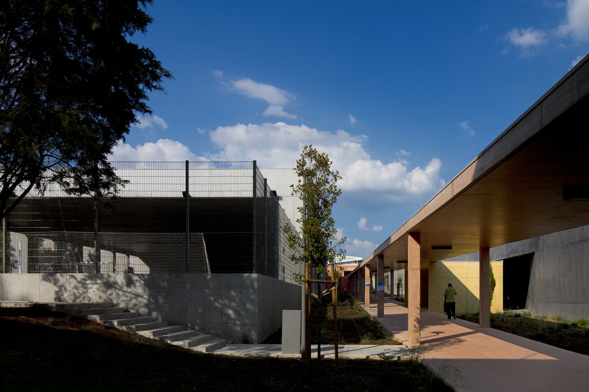 A gathering and ungathering space assumed in a logic of uniting the three schools. We focused mainly on the remodel of the disperse classroom and administrative support blocks, uniting them though a cloister and reating accessible areas and a new circulation paths joint by a living and covered playground.