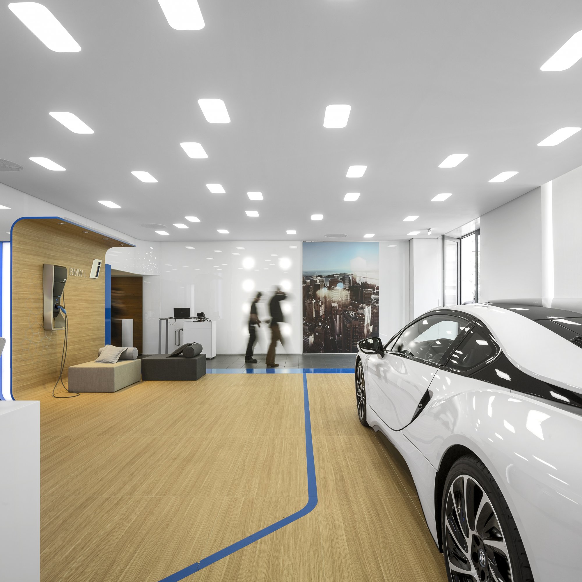The lightng in the ceilling, apparently scattered at random, take us to the worlds of high-speed movement, based on a clean design that allows the cars on display to express the importance of the project essence.
