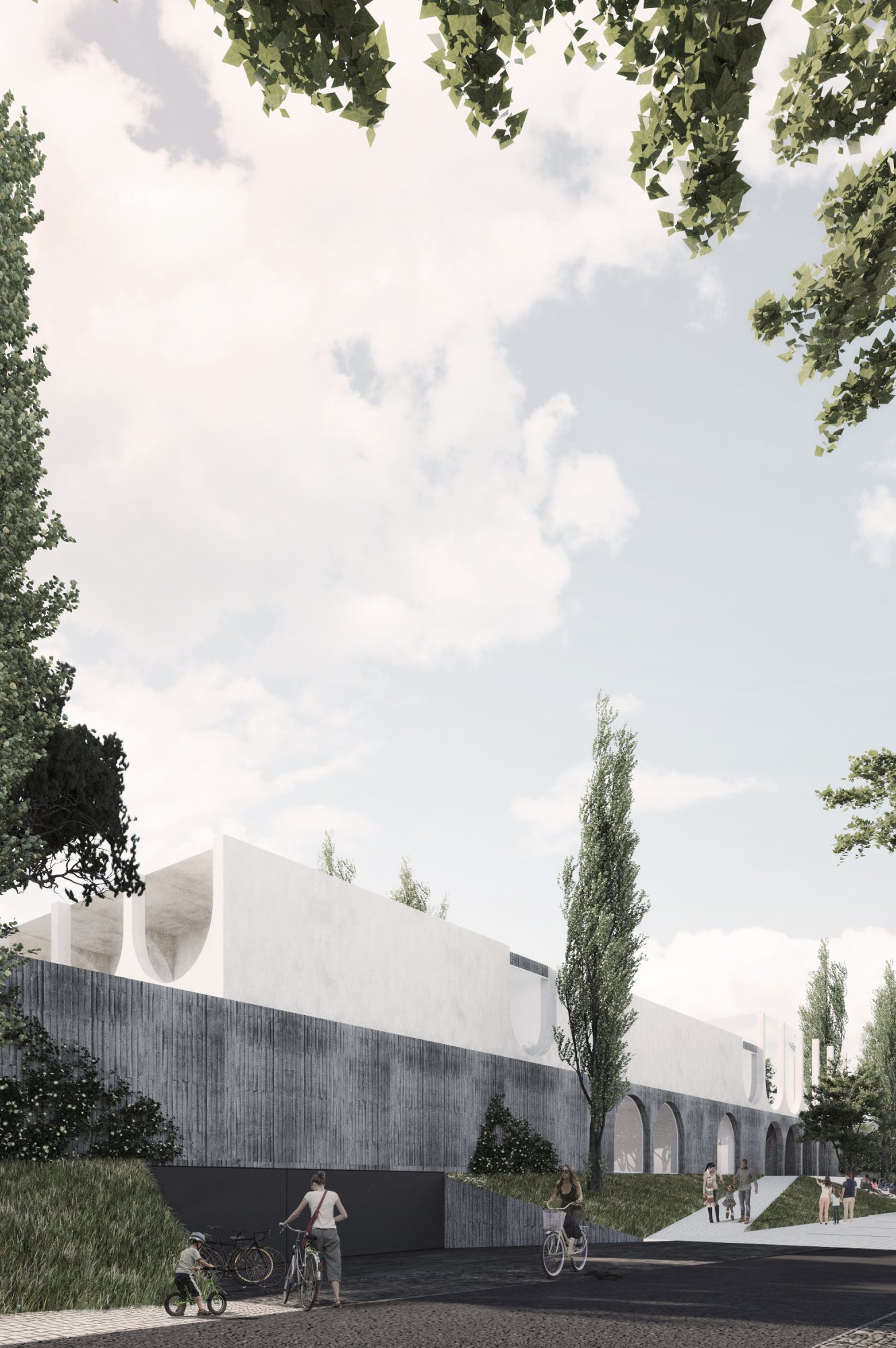 This School emerges in the midst of a forest - a garden that embraces it, protects it, and assumed itself as a balancing factor in attenuating solar radiation, providing better comfort conditions. The ancestral organization of circulations in the form of a cloister, punctuated by a strong influx of light, is the most suitable configuration for organizing the various functional areas of the school. A cloister, a central garden, an accessible path that develops in a circle around the courtyard, this poposal condenses the functional areas of the school, integrates the playgroung area on the roof, and frees up space around the building, increasing the public area, which through a green surrounding provides seating areas and inviting pathways.