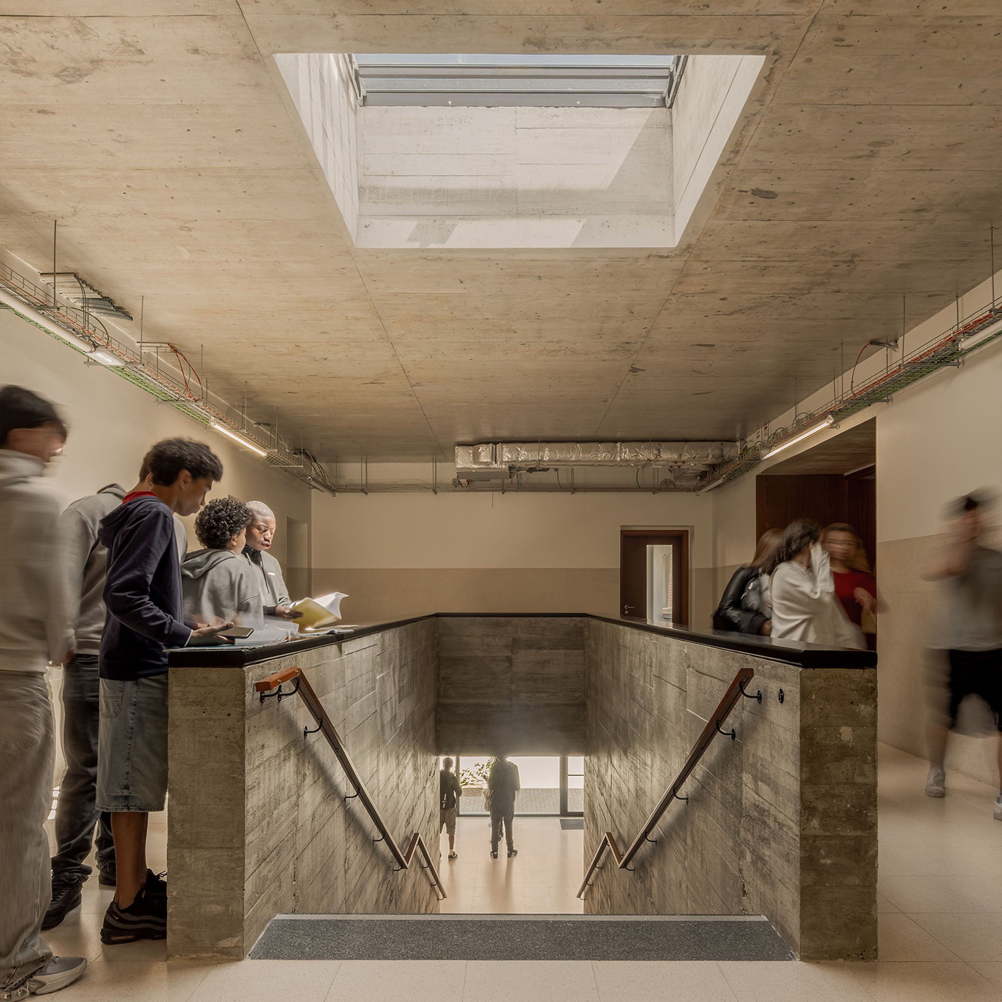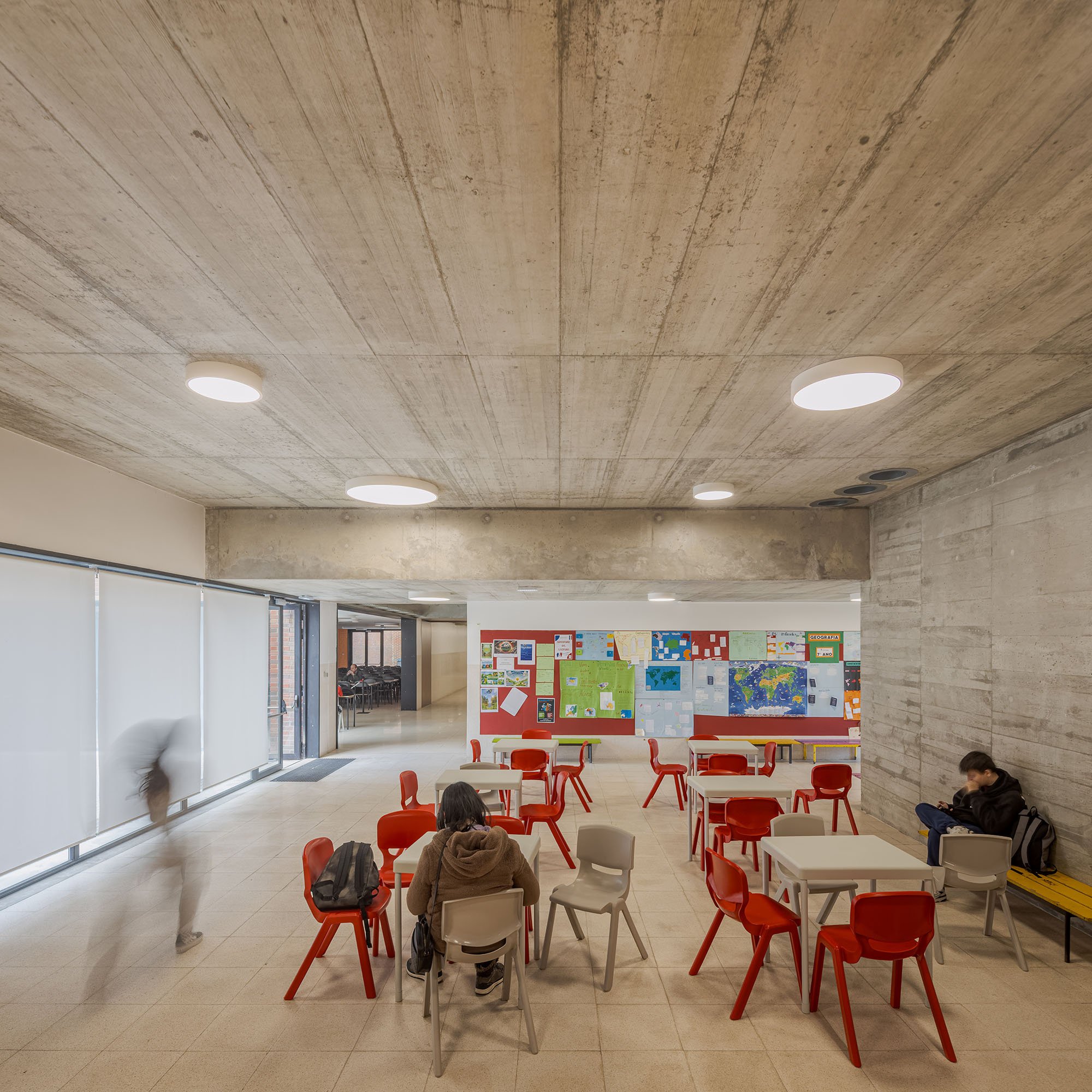 Transforming a dispersed school, consisting of several separated buildings, into a single building that, following the logics and circulation axes created inside, extends across the terrain creating courtyards, open spaces, recesses and galleries.
