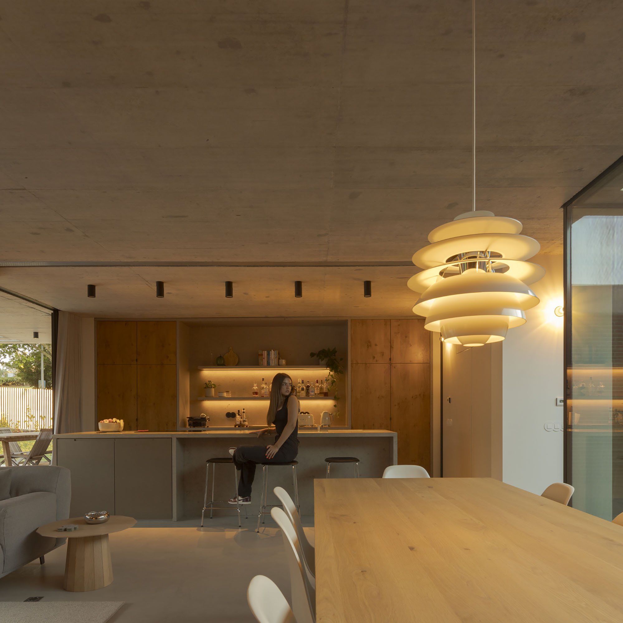 The design of the house seeks to synthesize the sensation conveyed by the landcaping work, the courtyards, the interplay of ligh and shadow, the differences in levels and the materiality, which are embraced as references for the project. The horizontal plane and the pargolas that frame the construction project us towards the view, framing the house in a welcoming and coherent manner.