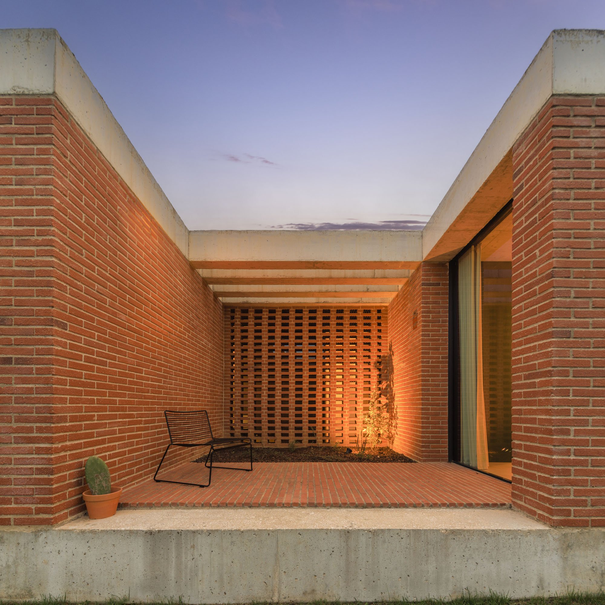 Inside, there is what we can cal "harmony" betwee the white vertical planes and the solid red brick planes. Spaces are hierarchically distributed, and the courtyards and voids highlight the evident landscaping work.