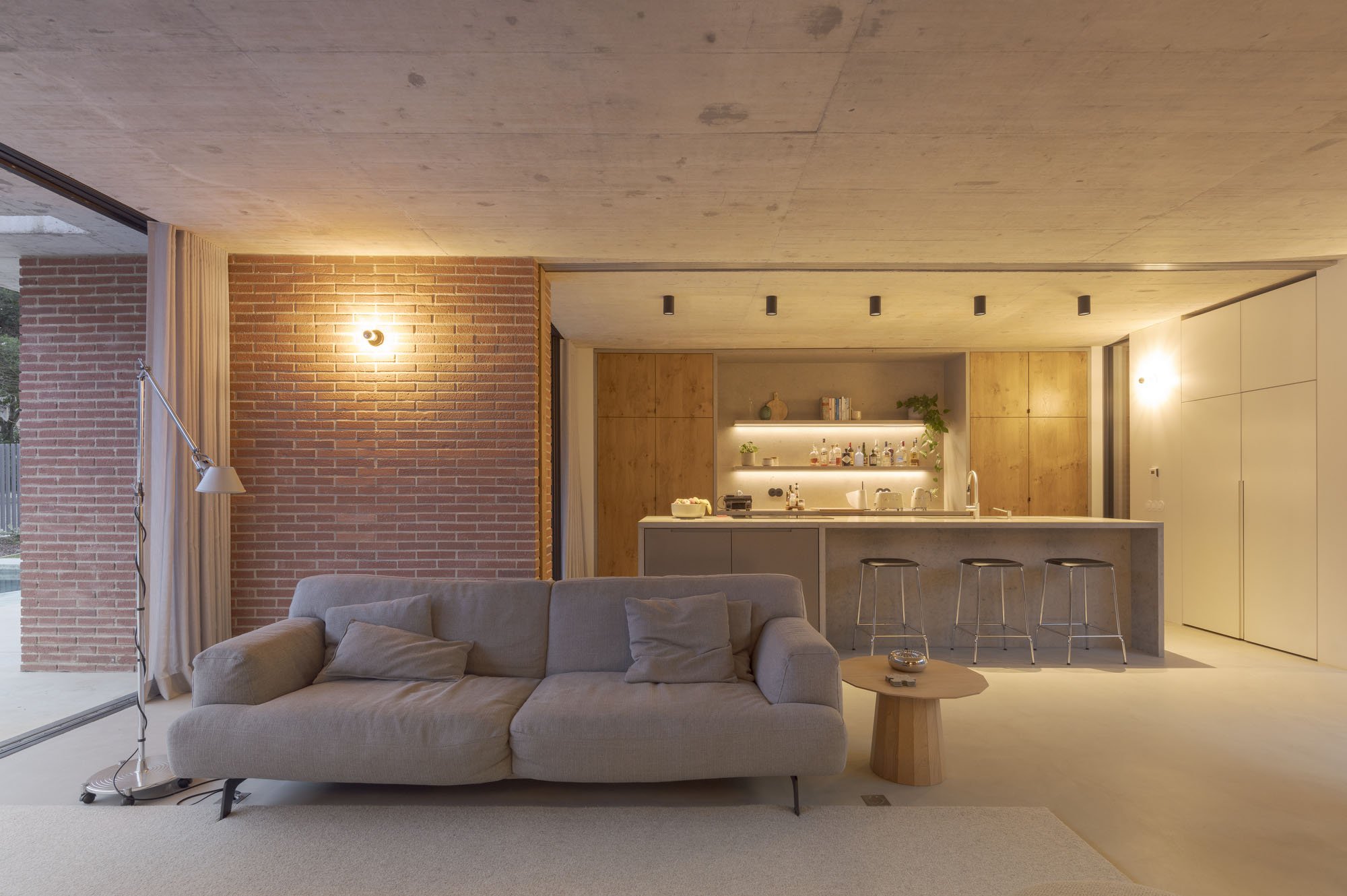 The design of the house seeks to synthesize the sensation conveyed by the landcaping work, the courtyards, the interplay of ligh and shadow, the differences in levels and the materiality, which are embraced as references for the project. The horizontal plane and the pargolas that frame the construction project us towards the view, framing the house in a welcoming and coherent manner.