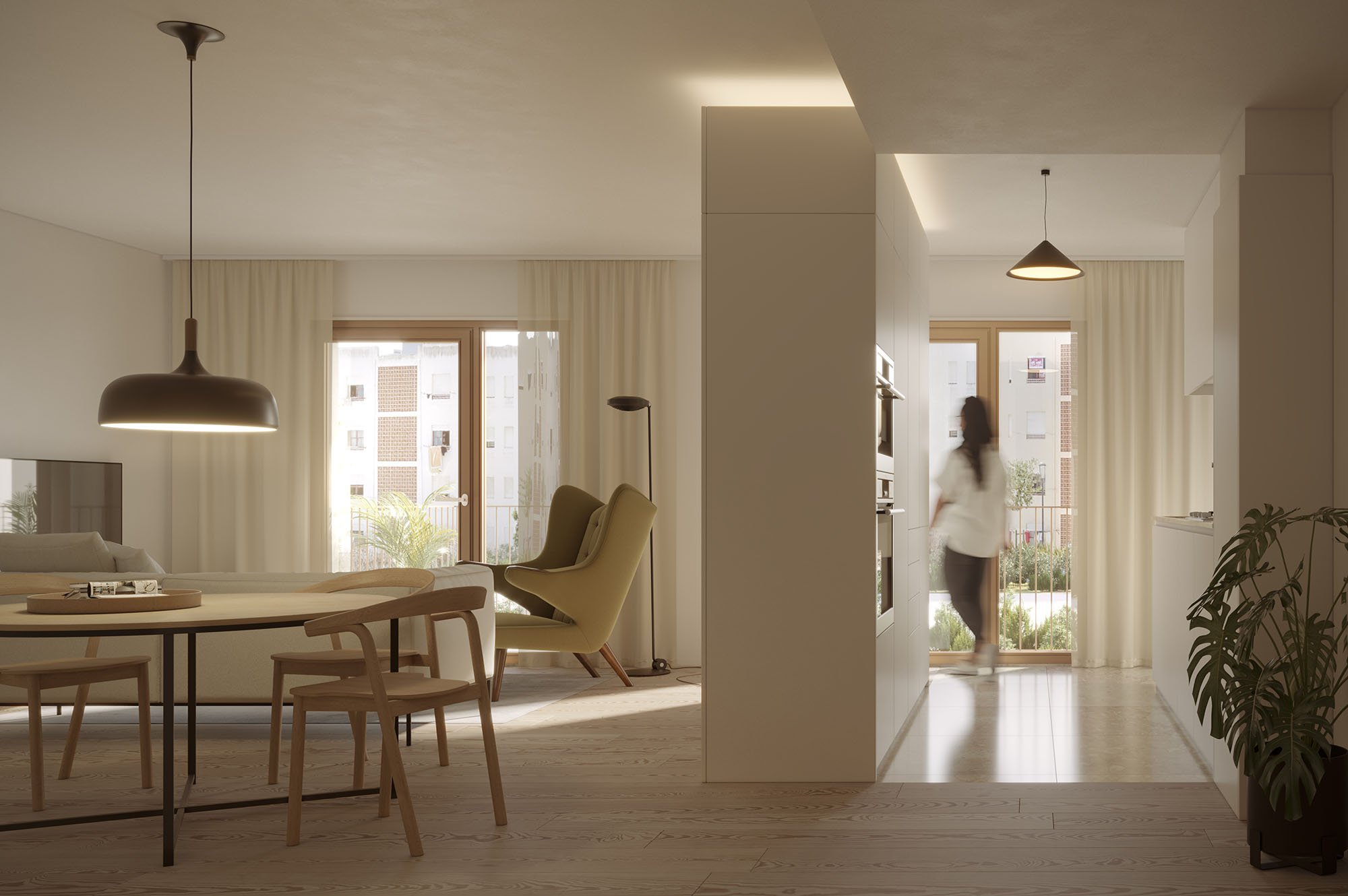 Conditioned by the rigidity of the Municipal Allotment Plan, which defines alignments and volumes, as well as a dated image of the pre-existing structures, two buildings are shaped and integrated into the constructed surroundings, presenting themselves as a uniform and homogeneous Block that does not reveal façades or roofs, offering a unique, contemporary and innovative image.